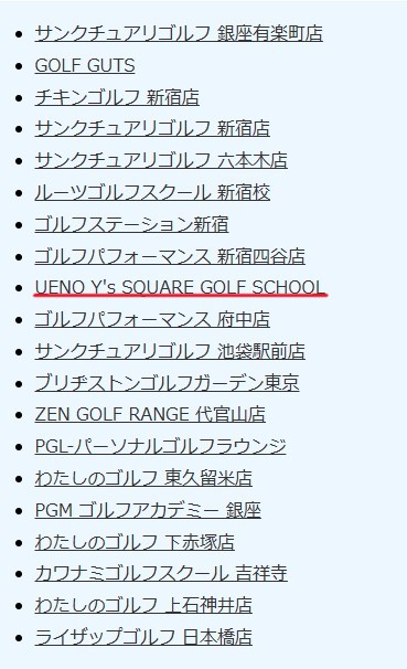 UENO Y's SQUARE GOLF SCHOOLが