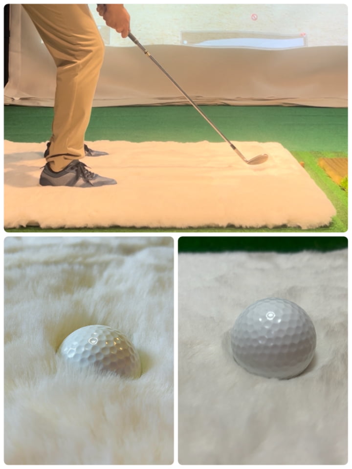 インドアゴルフで中々再現しづらいバンカー練習も、従来のブラシ型マットよりボールや足元の沈み方やエクスプロージョンに打った際の打ちごたえ等、より実戦的なバンカーショットを体感出来るバンカーマットを採用しております。