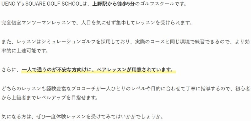 『UENO Y's SQUARE GOLF SCHOOL(ウエノワイズスクエアゴルフスクール)』で